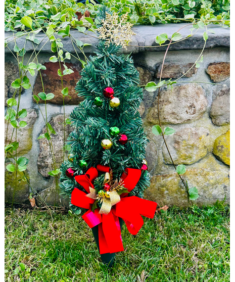 decorated Christmas tree in a cone for the graveside.
