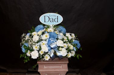 Loving Dad Plaque surrounded by fresh flowers- Used to be placed in front of the headstone at the gravesite.