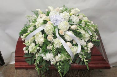 This gorgeous all-white casket spray is a wonderful way to send peace.
